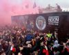Liverpool fans threw bottles and cans and aimed fireworks at the Manchester City bus as it